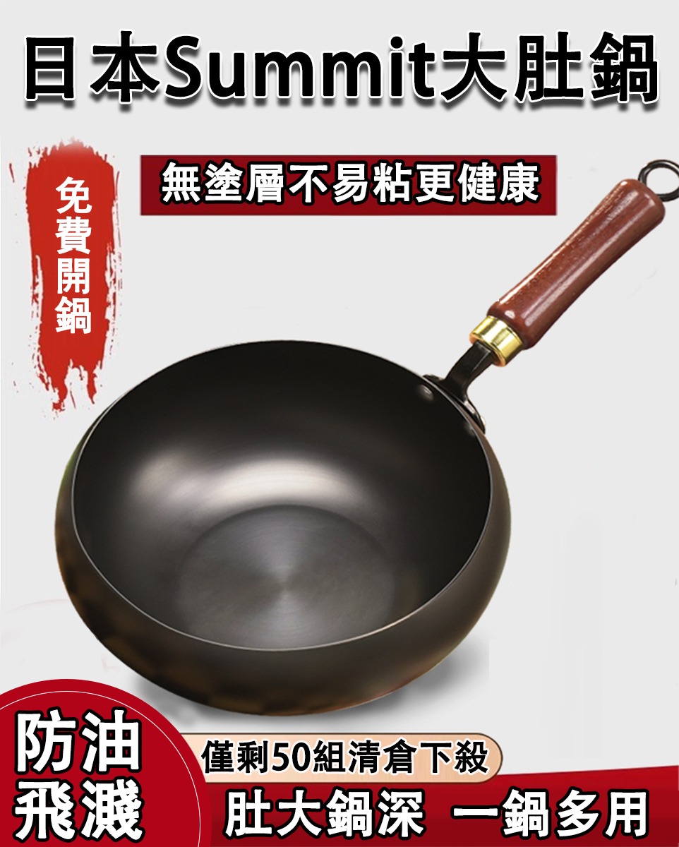 日本Summit鍋具超值入手。僅剩50組限時清倉,一鍋多用輕鬆駕馭百味,日本原礦精鐵大肚鍋,無塗層物理不沾黏更安心