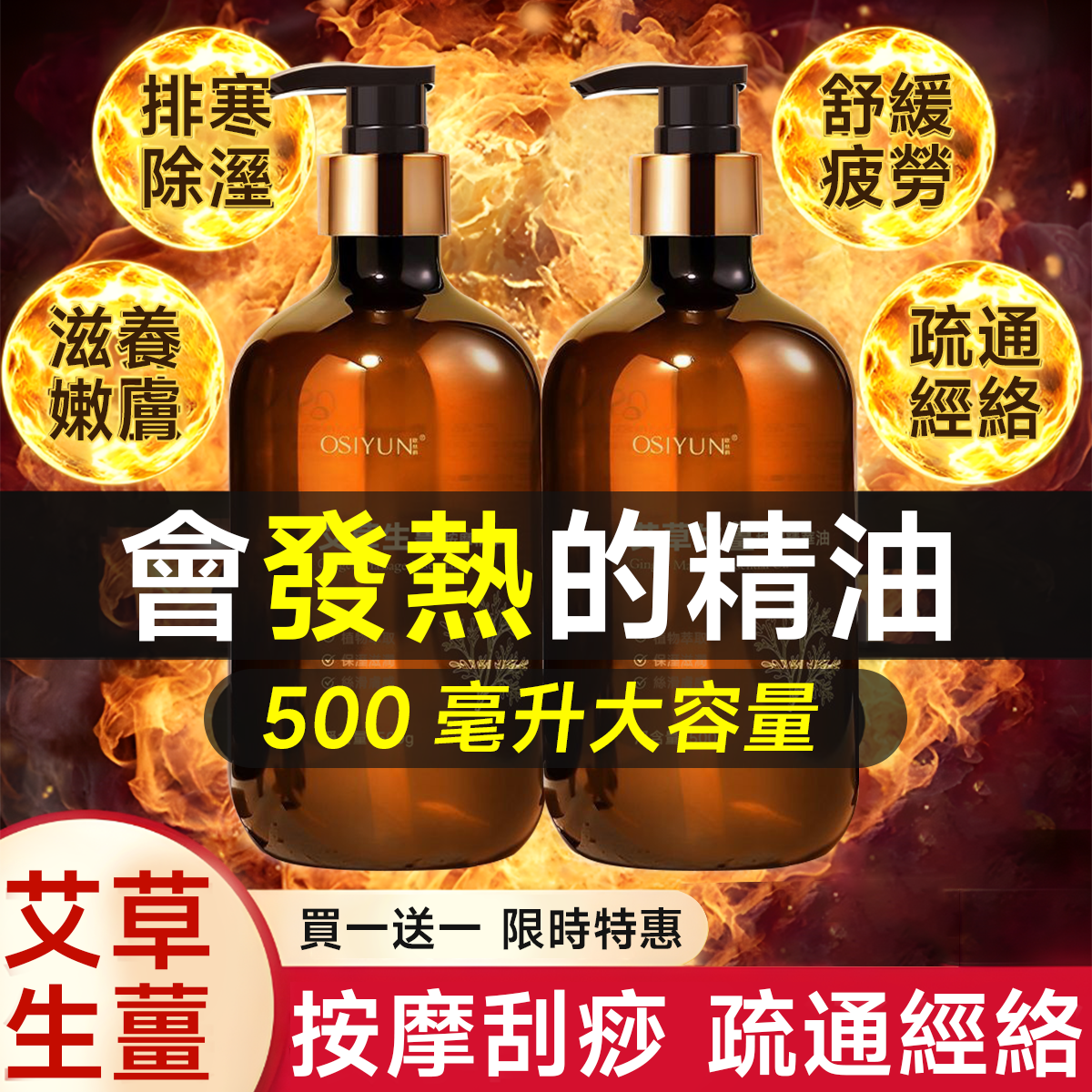 半小時前艾草生薑按摩精油 - 融合艾草和生薑精華,發熱配方,深層排毒去濕,疏通經絡,適合全身按摩 - 【超值活動】98%人選擇,3入組僅需NT$-1342元